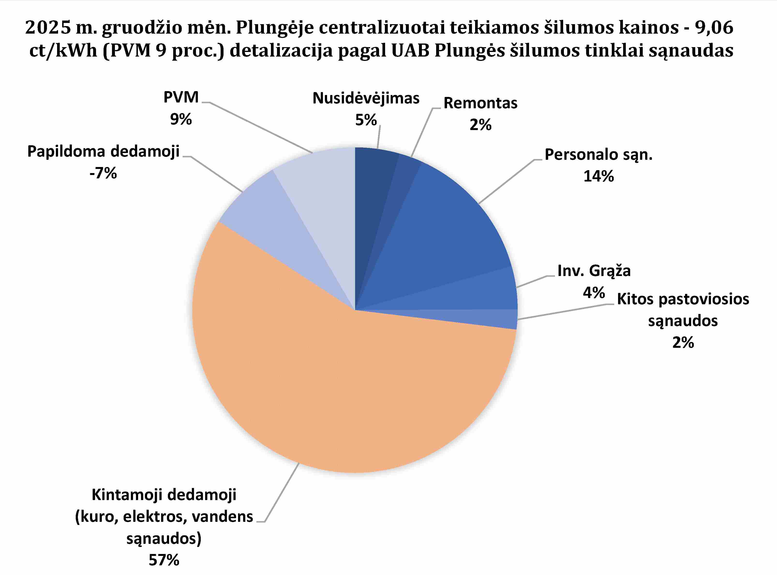 Plungės miesto vartotojams spalio mėn. šilumos kaina mažėja 15,34 proc. dėl kainos skaičiavime įvertintos naujos kuro struktūros.