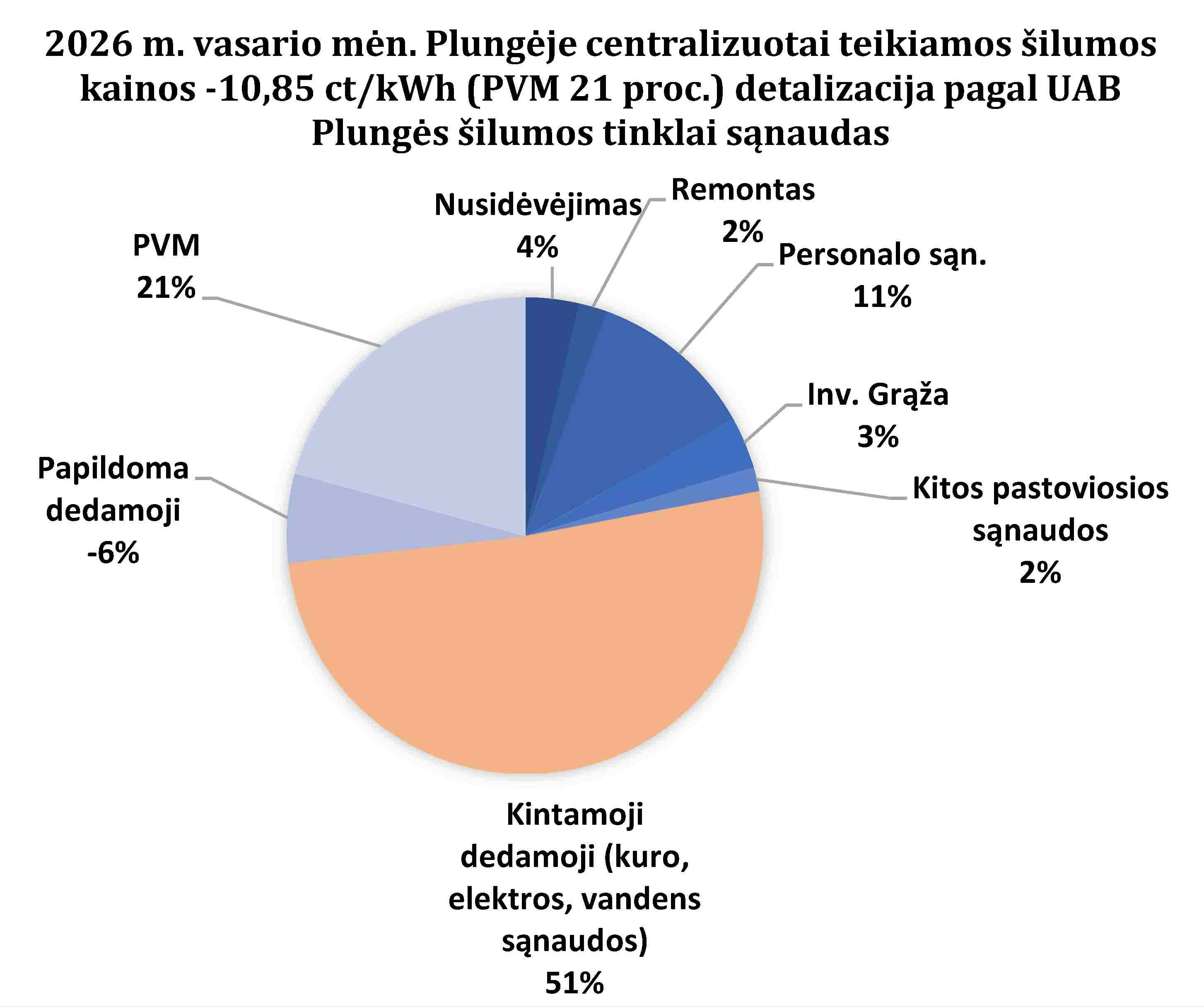 Šilumos ir karšto vandens kainos 2026 m. vasario mėnesį